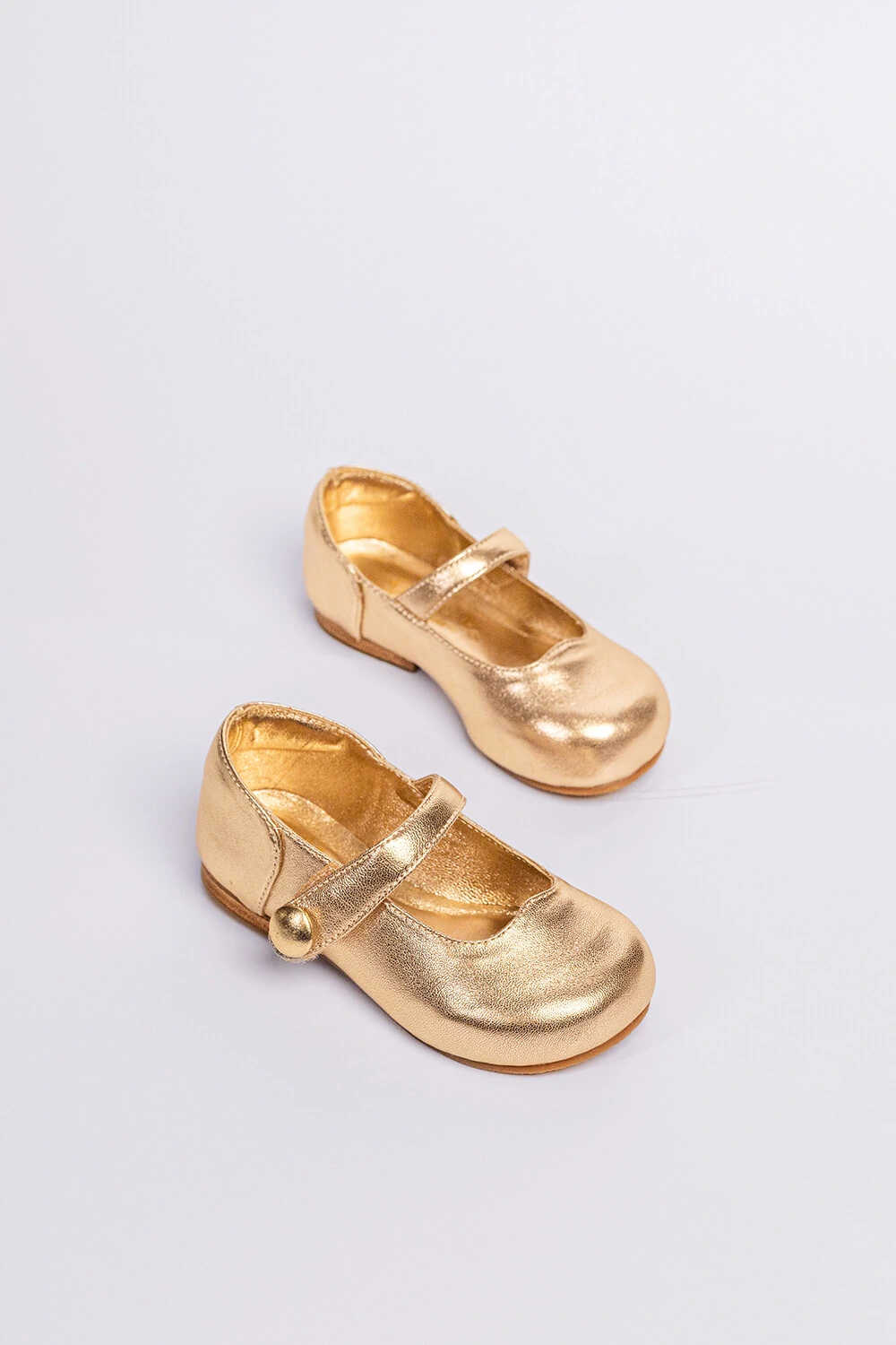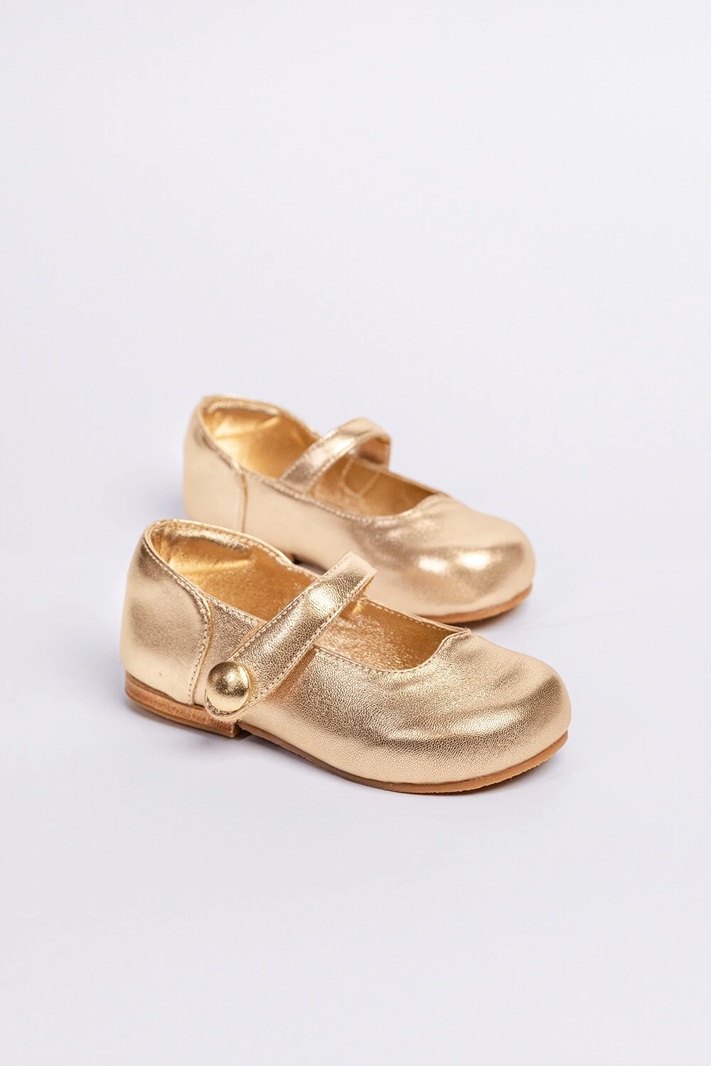 Sapatilha com decote coração é super delicada e sofisticada ao mesmo tempo, o detalhe de botão entra em sintonia com modelos da coleção Barreto que permite uma unidade estética para mãe e filha, seu acabamento em couro metalizado caprino confere conforto e elegância.
